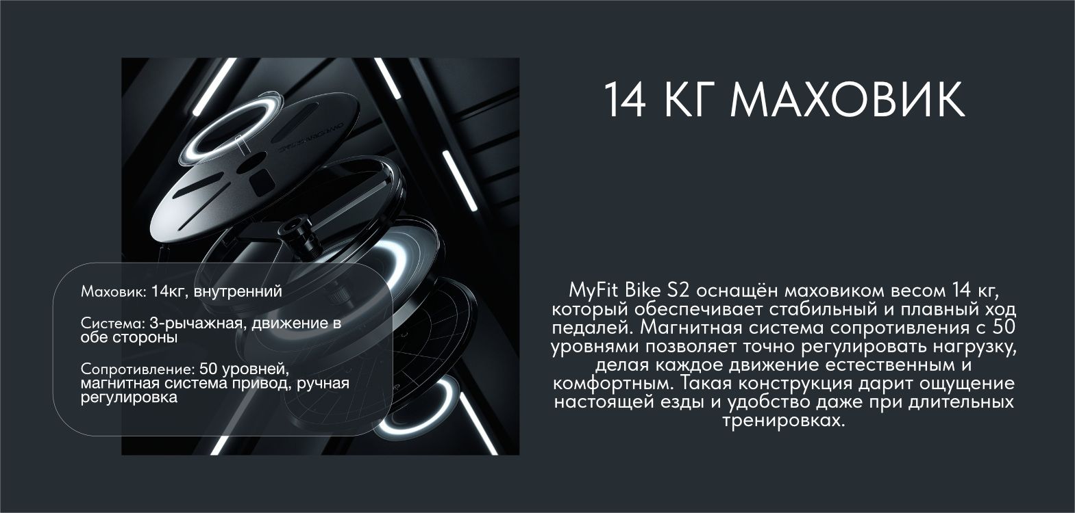 MyFit Bike S2 — выбор для тех, кто хочет интенсивные и комфортные тренировки дома. Магнитная система с 50 уровнями сопротивления даёт полный контроль над нагрузкой: от лёгкой разминки до серьёзного кардио. Регулировка усилия происходит плавно, обеспечивая естественное движение педалей и бережное отношение к суставам.