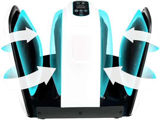 это усовершенствованная многофункциональная комбинация воздушно-компрессионного массажа икр с массажными роликами для стоп, массаж со всех сторон воздействуют на голени (икры) и стопы
