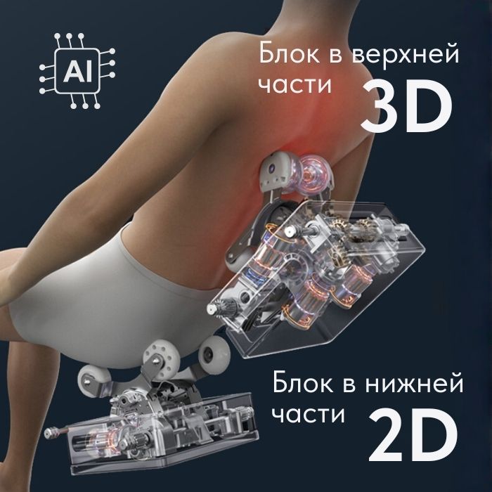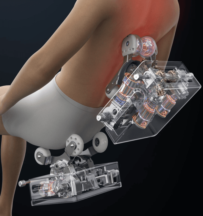 Инновационная система 4D+2D работает синхронно, точно повторяя движения рук профессионального массажиста. Механизмы адаптируются к форме тела, глубине мышц и зоне воздействия, обеспечивая более глубокое, точное и естественное ощущение массажа. Благодаря двойному воздействию массаж быстрее снимает напряжение, расслабляет мышцы и помогает восстановить тело по всей длине позвоночника — от шеи до поясницы.