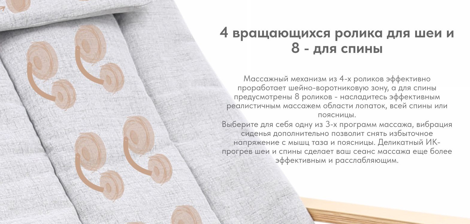 Роликовый массаж, Инфракрасное прогревание, Вибрация, Массаж Шиацу
